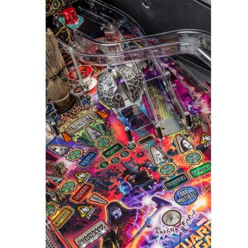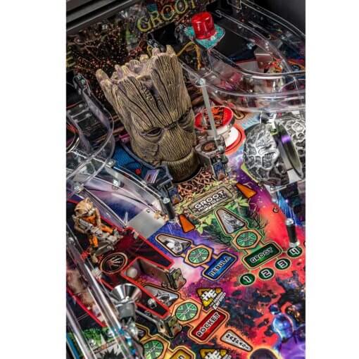 Stern’s Guardians of the Galaxy Pro, Premium, and Limited Edition models are packed with features that provide an irresistible gameplay experience. Each game features a sculpted and interactive ball-eating Groot. In addition, a custom sculpted Rocket figure will keep players on their toes as it blasts the ball back at rocket speed. Color-changing inserts highlight the mysterious and interactive Orb, which opens to reveal the powerful Infinity Stone. The Limited Edition and Premium models also feature extra magnets, custom artwork, RGB lighting, and sculpted Groot arms that sprawl across the playfield.
